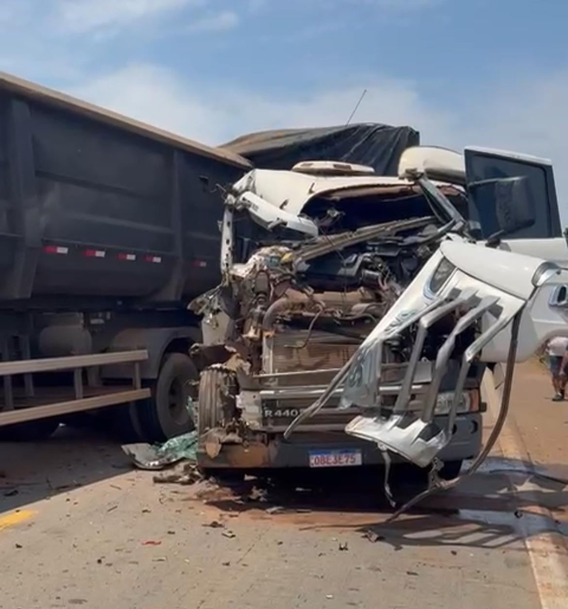 Grave colisão entre duas carretas interdita BR-163 entre Sinop e Sorriso