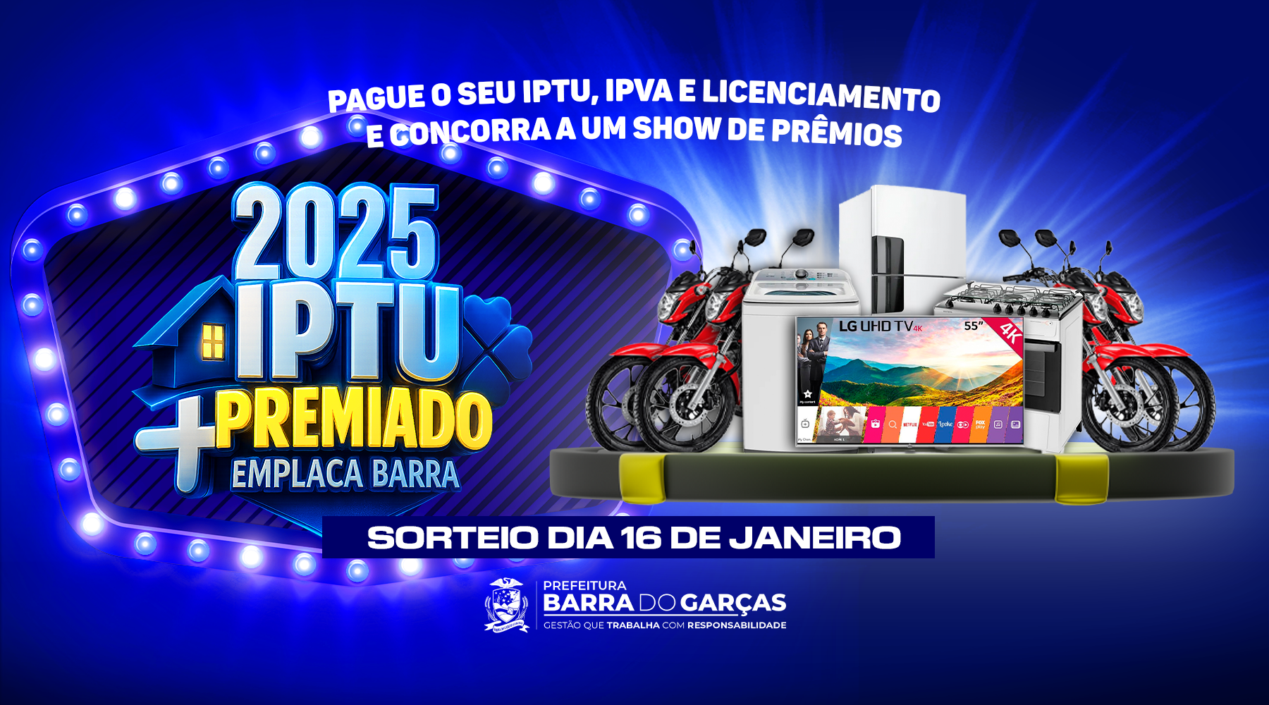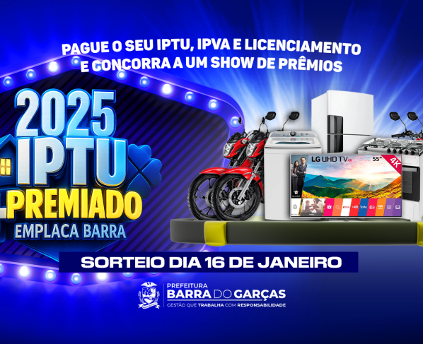 • IPTU Premiado e Emplaca Barra 2025: Pague seus débitos e concorra a um show de prêmios